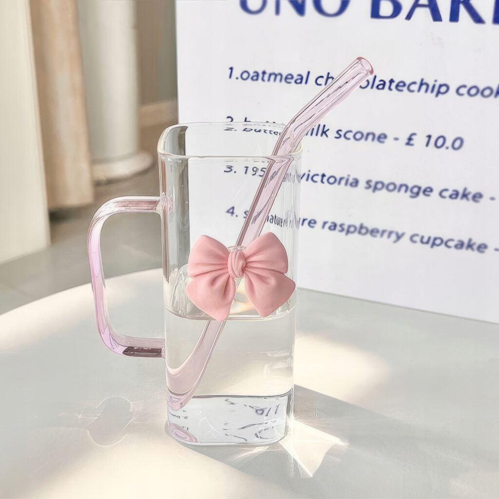 Szklanka do Napojów Smoothie Kubek ze Słomką z Przykrywką Szkło 320ml