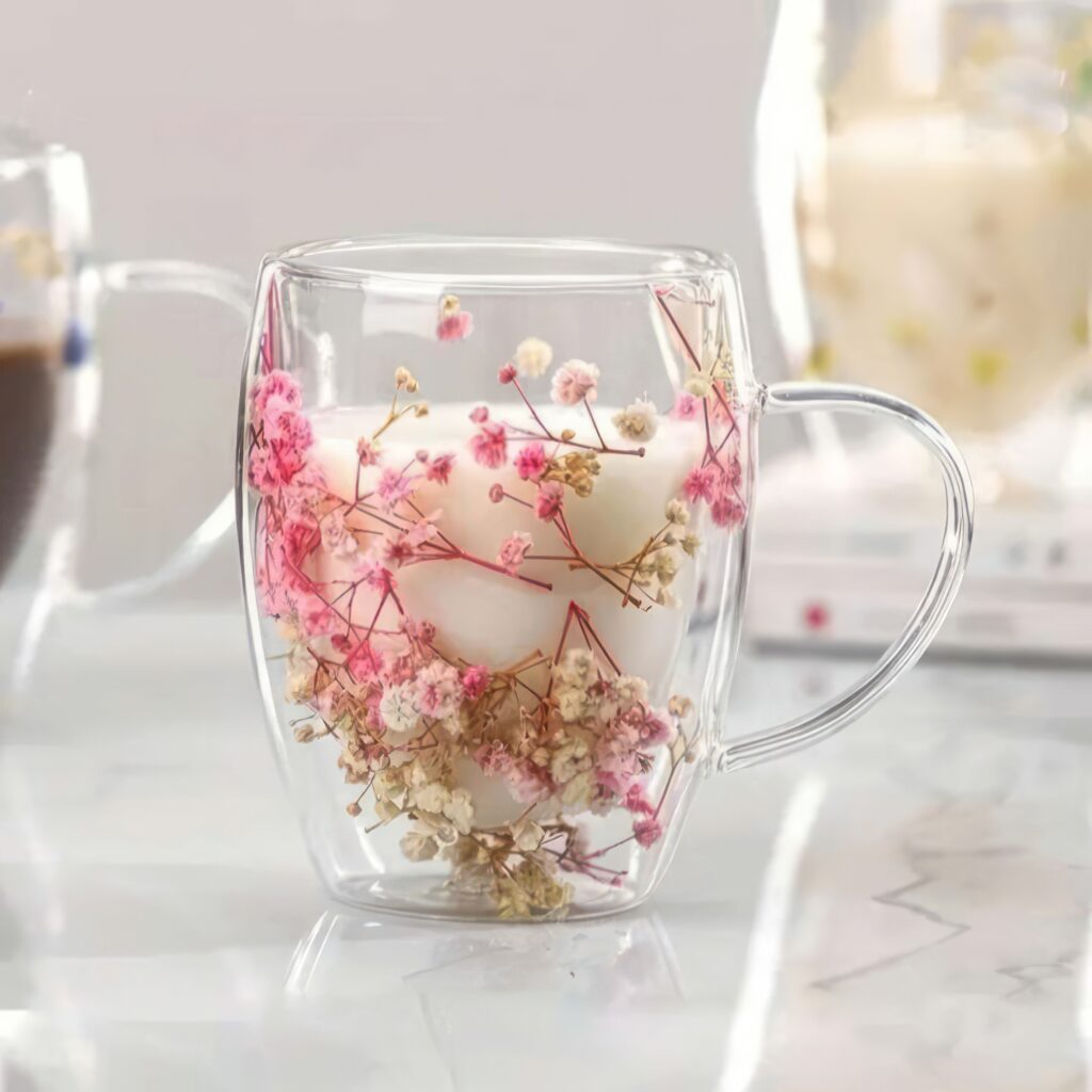 Szklanka do Herbaty Kawy Termiczna z Kwiatami w Środku 300ml
