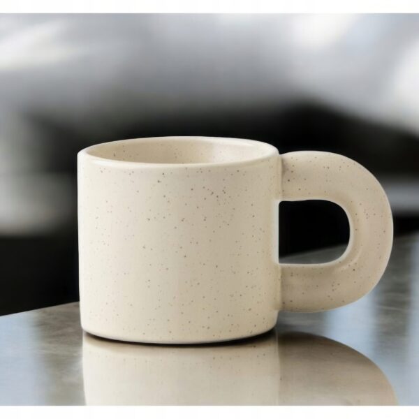 Nasz subtelny, śmietankowy kubek z delikatnymi nakrapianiami kropkami zachwycą każdego, kto ceni prostotę i wyjątkowy design.
