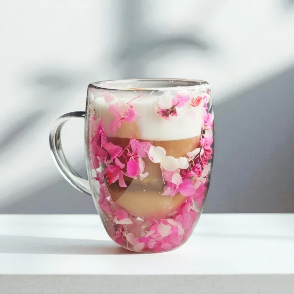 Szklanka do Herbaty Kawy Termiczna z Kwiatami w Środku 300ml