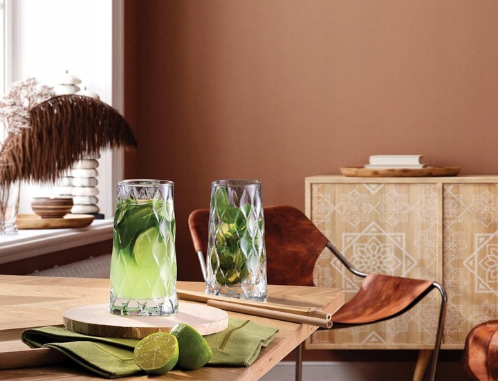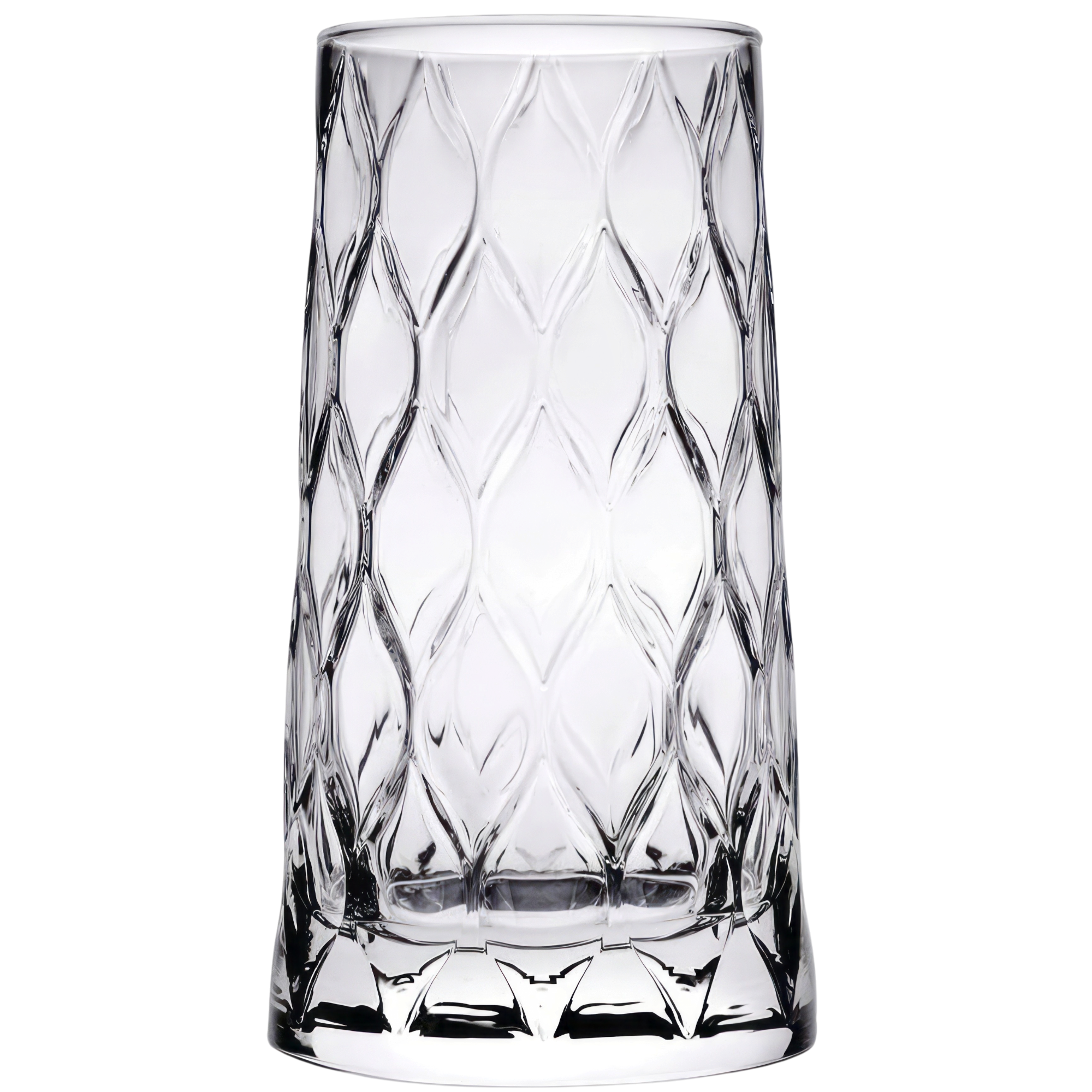 Odkryj na nowo sztukę serwowania napojów dzięki wyjątkowym, wysokim szklankom falowanym wykonanym z grubego szkła.